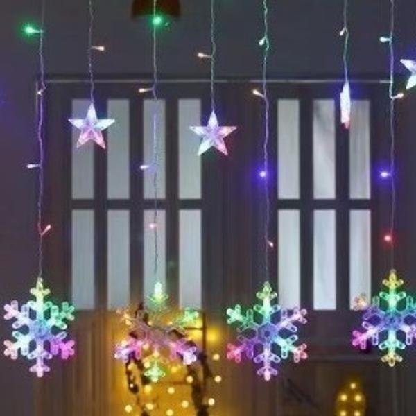 ✨ Características do Produto:- Cascata LED Floco de neve e estrelinha com 6 metros de comprimento e 110V.- Pendente de 75cm de altura, perfeito para uso externo.- Oferece 8 funções de luz para iluminação variada.