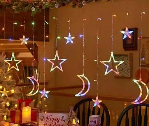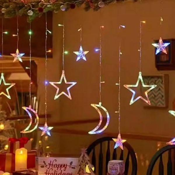 ✨ Uso:- Apropriada para decoração e iluminação interna e externa.- Ideal para quem busca uma cascata LED com estilo Lua e Estrela.