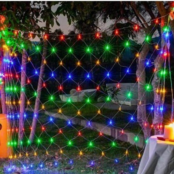 ✨ Características do Produto:- Rede LED Decorativo Multicolorido com 8 funções de luz.- Tamanho: 3.80m de comprimento x 1,50m de altura.- Voltagem: 110v.